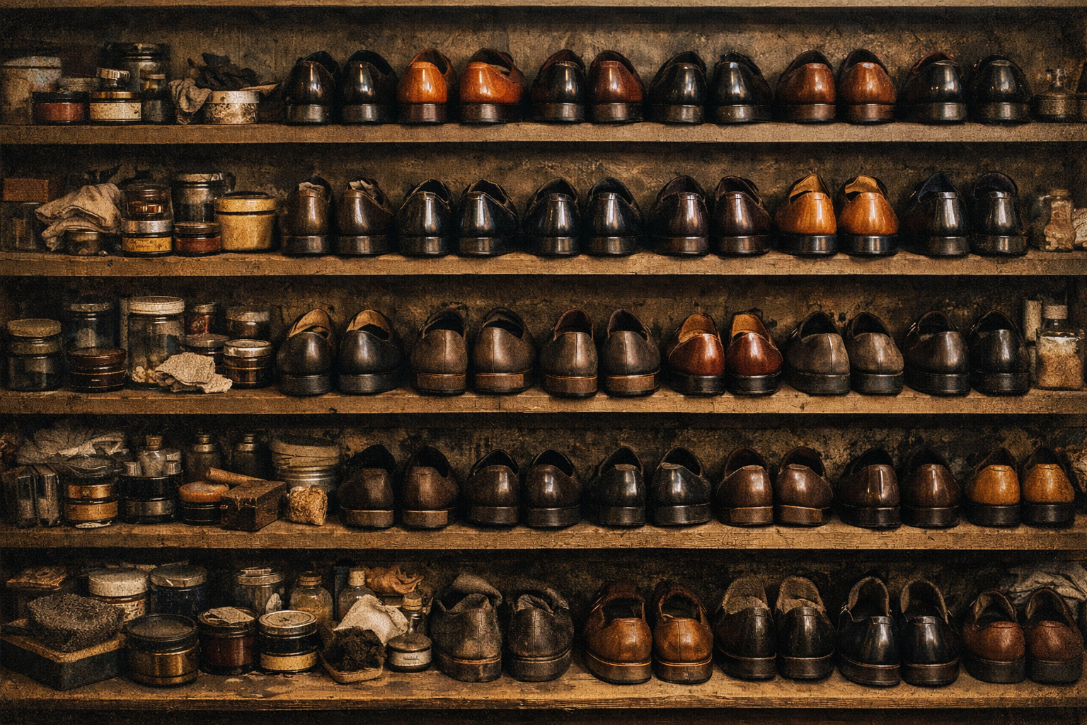 • brown shoes with patina polishing